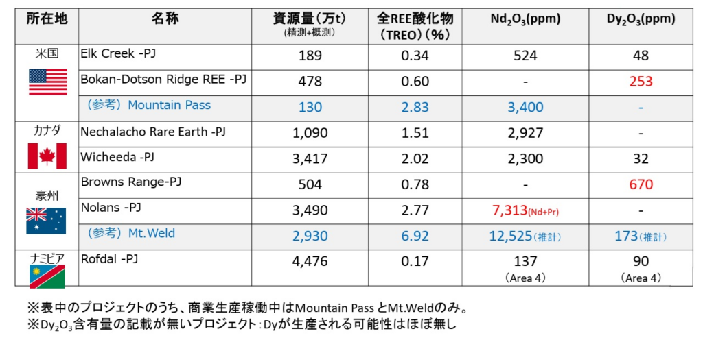 <中国外の鉱山・鉱床開発>*参考・引用:JOGMEC レアアースの需給動向 2024.06.27