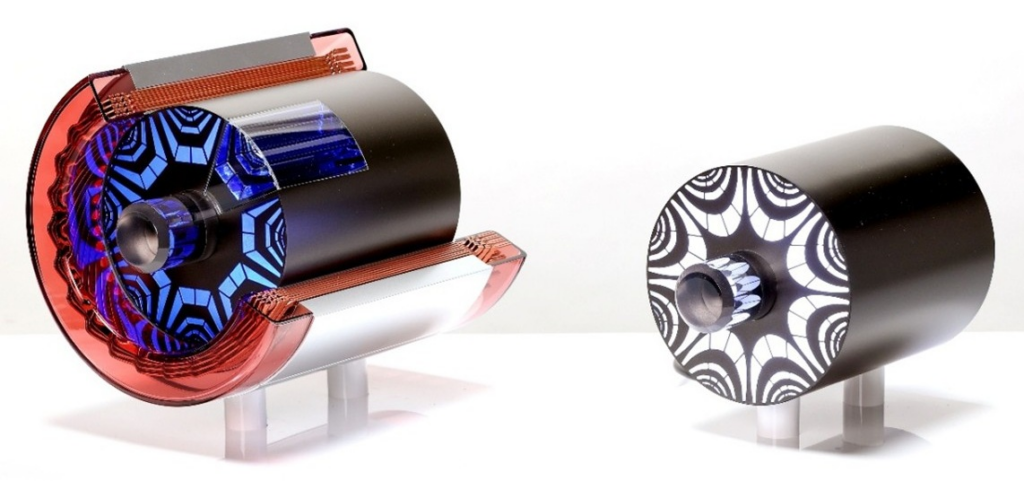 新型モーターのモックアップ(左:主駆動用ステーター&ローター、右:副駆動用ローター)