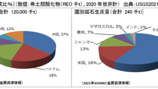 磁石プロの視点 レアアース(希土類)鉱石の種類と世界分布 今後は、中国以外でのレアアース鉱石の採掘を増やすことと分離精製設備の増強を図ること、ネオジム磁石のヘビーレアアース(重希土類)含有を無くすことなどがレアアース問題に対する世界の大きな流れになると考えられます。 2025.05.22 磁石プロの視点